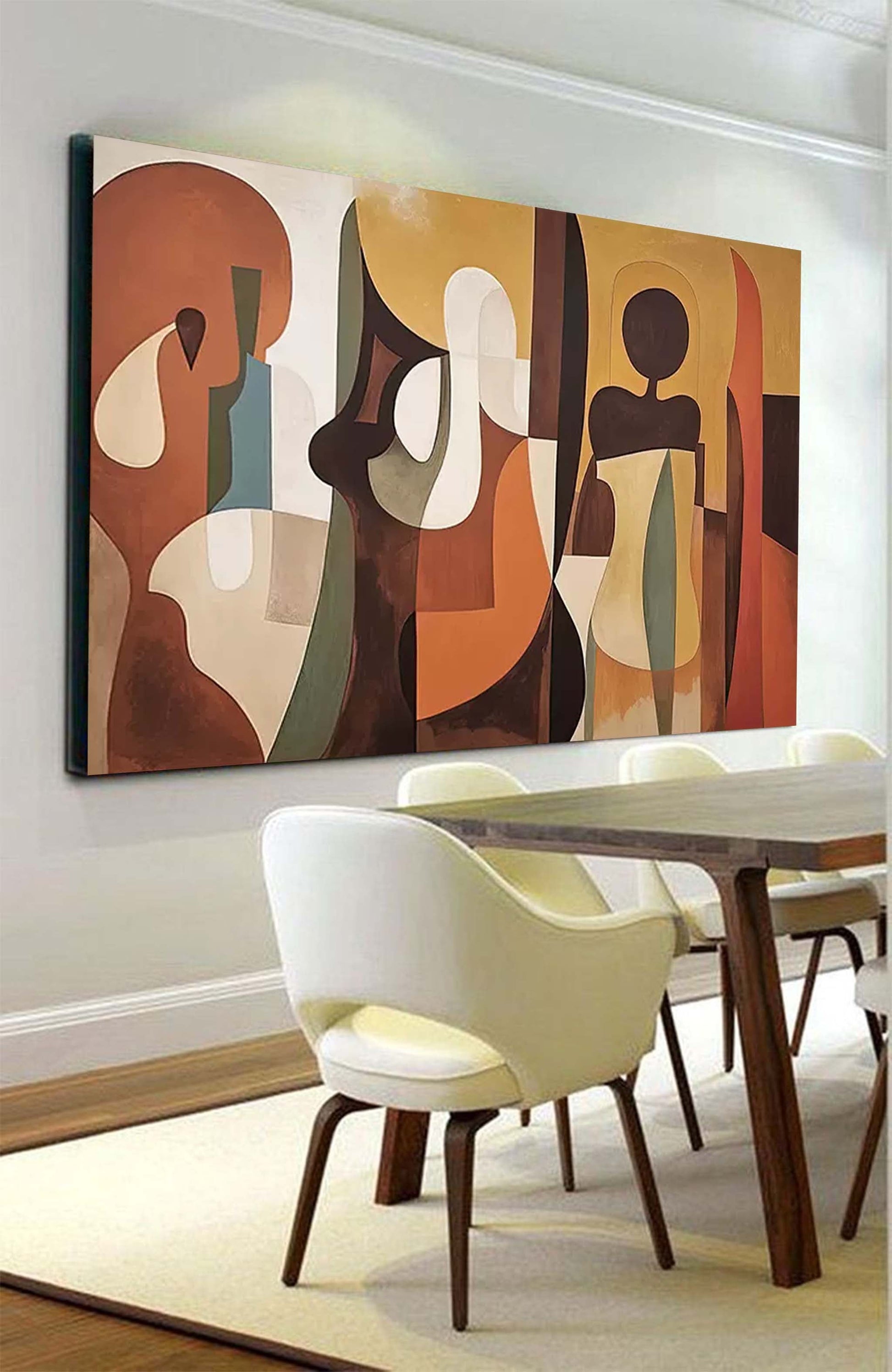 Evoke a sense of timeless elegance with this stunning African wall art. A sophisticated work of figurative abstract art, this hand-painted canvas depicts a gathering of stylized figures in a rich, warm palette. The composition is a beautiful example of earthy tones artwork, blending terracotta, ochre, and deep browns. With its graceful curves and modern aesthetic, this piece also serves as striking art deco wall art, bringing a worldly and sophisticated presence to any contemporary living space or study.