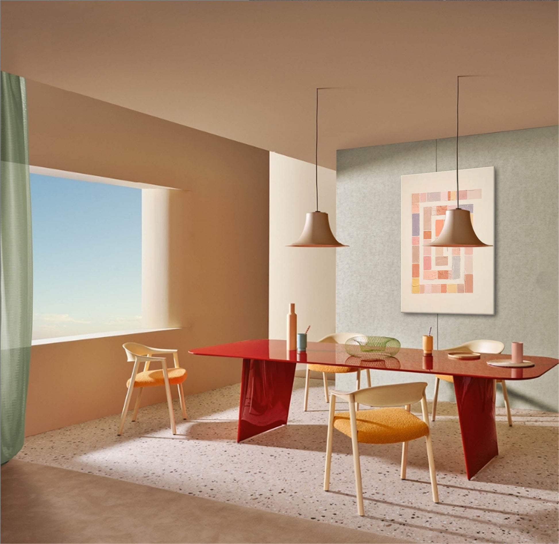 Find tranquility in the structure of this beautiful **minimalist abstract art**. This handmade canvas features a captivating maze-like spiral composed of small, textured blocks in a soft pastel palette. Shades of blush pink, peach, lavender, and pale yellow are carefully arranged to create a sense of calm and order. As a perfect piece of **geometric wall art**, its clean lines and meditative pattern bring a sophisticated and modern touch to any room. This **pastel wall art** is ideal for creating a serene focal point in a minimalist home, office, or quiet space.